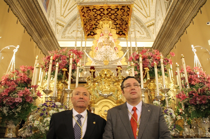 La Virgen de la Victoria pone su palio en la Plaza de la Campana, tras varios años sin poder hacerlo debido a la lluvia. Le acompaña la Banda de Música “María Santísima de la Victoria”